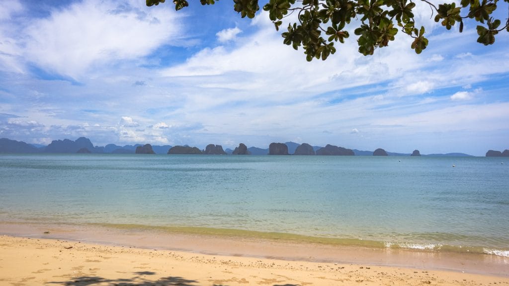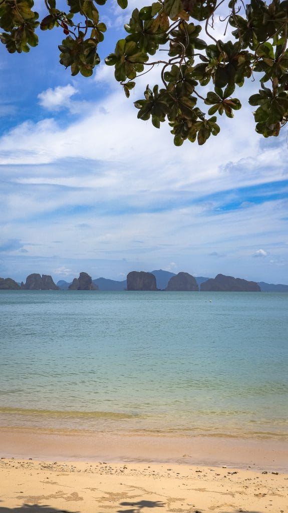 Après Khao Lak, on a embarqué pour Ko Yao Noi, une petite île encore préservée entre Phuket et Krabi. Ici, pas de grosses infrastructures : des plages sauvages, quelques bungalows face à la mer et une ambiance ultra slow. On logeait au Tha Khao Bay View Bungalow, entouré de nature, et on a exploré l’île en vélo, avec un gros coup de cœur pour la plage du Six Senses, quasiment déserte lors de notre passage. C’est l’endroit idéal pour faire une pause dans ton itinéraire, ralentir le rythme et profiter de la vue sur les rochers karstiques au loin.