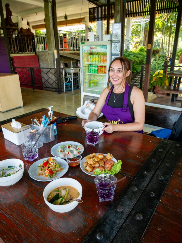 De mon côté, j’ai choisi le combo cours de cuisine thaï le matin + observation des éléphants l’après‑midi, une journée ultra complète que j’ai adorée. Le tarif était de 2 700 THB (environ 71 €), transports inclus.