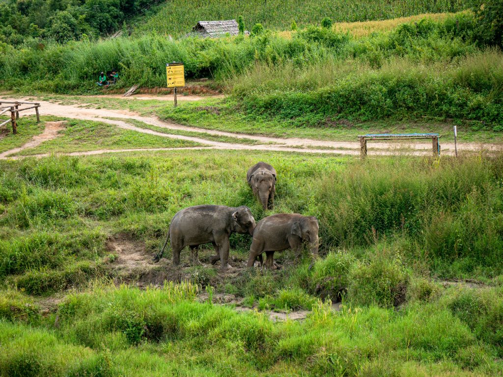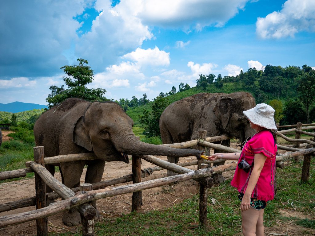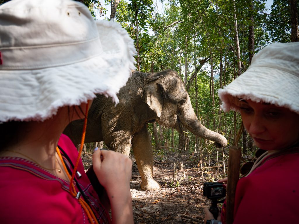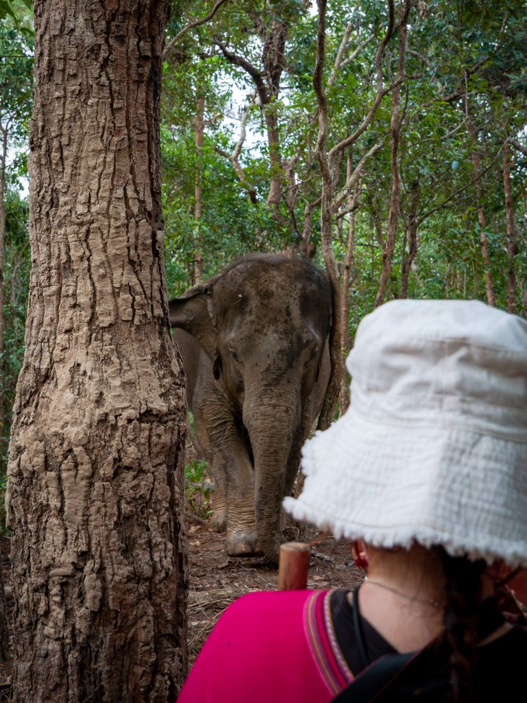 Avant de venir à Chiang Mai, je voulais absolument trouver un sanctuaire vraiment éthique, mais ce n’est pas si simple. Plusieurs agences et guides me proposaient des « sanctuaires » en me vendant la possibilité de se baigner avec les éléphants ou de passer beaucoup de temps à les toucher, ce qui n’est pas compatible avec une approche respectueuse.