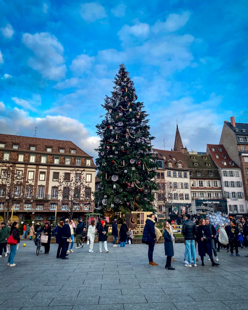 Le centre historique de Strasbourg, aussi appelé « la Grande Île » car elle est entourée par l’Ill, est classée au patrimoine mondial de l’UNESCO. Les maisons à colombages, les ruelles pavées et les places animées créent une atmosphère charmante. Parmi les lieux les plus beaux que j’ai pu admirer en cette fin d’année : la place Kleber et son grand sapin, la rue Mercière qui donne sur la Cathédrale et la place Gutenberg et son petit sapin. Le meilleur moyen de découvrir Strasbourg ? En faisant un free tour !